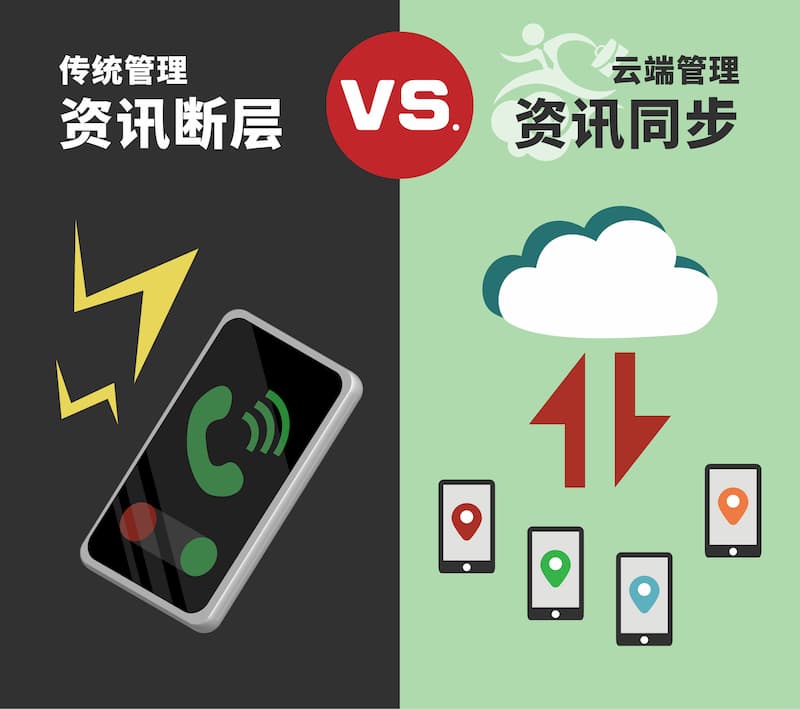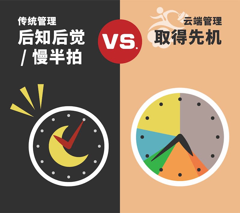 1.传统管理容易造成信息断层;云端管理有效达到信息同步。