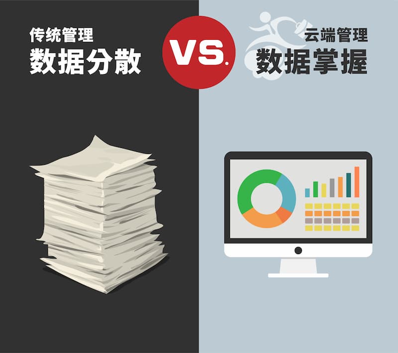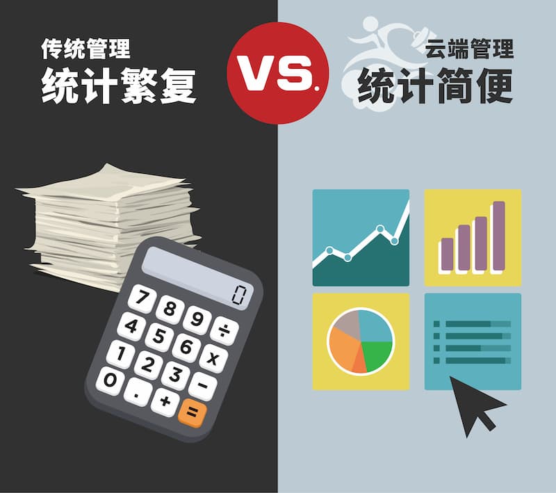 5.传统管理需要重复的数据输入和归档动作,无形中浪费人力和时间在作统计;云端管理除了行动作业外,更重要的是帮助企业省去繁复的统计工作。