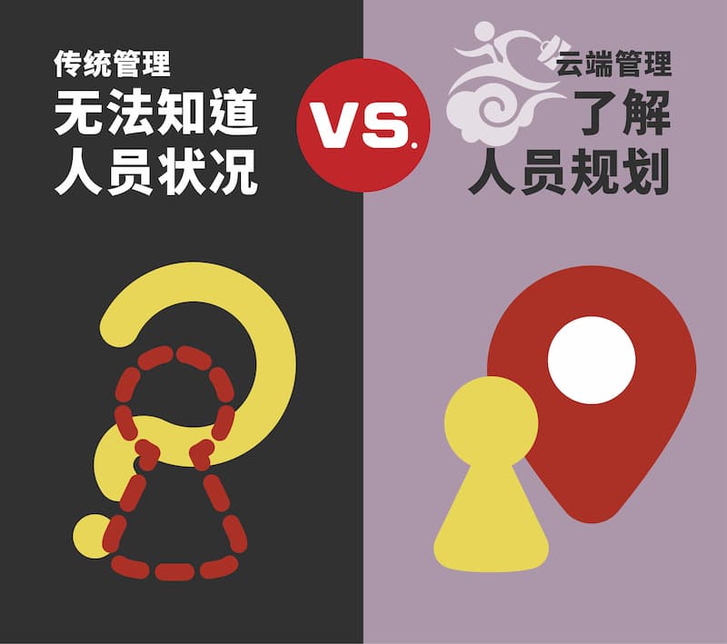 3.传统管理若想知道人员状况可能需要不停的电话或实时软件联络询问,容易造成压迫性的管理;而云端管理工作状况实时同步,管理者在后台看到状况再作询问确认,精确管理团队与任务进度。